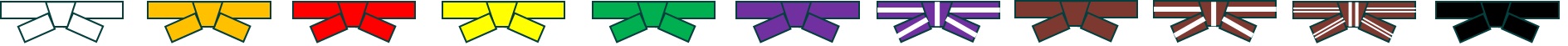 The progression of coloured belts (Obi) shows progress and status within a Dojo. With dedicated training you may be invited to a grading, which is several tasks set by your Sensei to assess whether you have acheived the standard required for award of the next coloured belt. The typical grading tasks for each belt are set out below. These tasks usually consist of demonstrating punching (Zuki) blocking (Uke) and kicking (Geri), in a simulated sparring (Kumite) and within the performance of the linked set of techniques (Kata) that relates to each level.