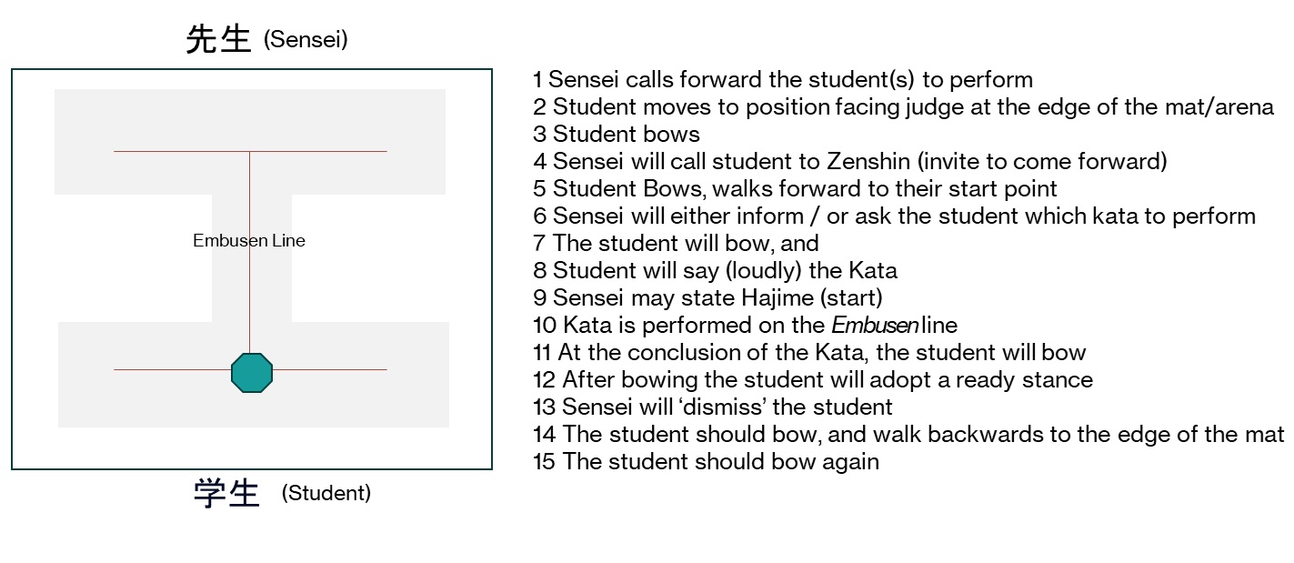 There are slight variations in etiquette for competition, in how the kata is declared, and how it is begun either by the student, or by the Sensei.